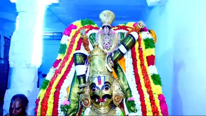மன்னார்குடி ராஜகோபாலசாமி கோவிலின் தெப்ப திருவிழாவின் 4ம் நாள் நிகழ்ச்சியாக கருட சேவையில் சுவாமி வீத…